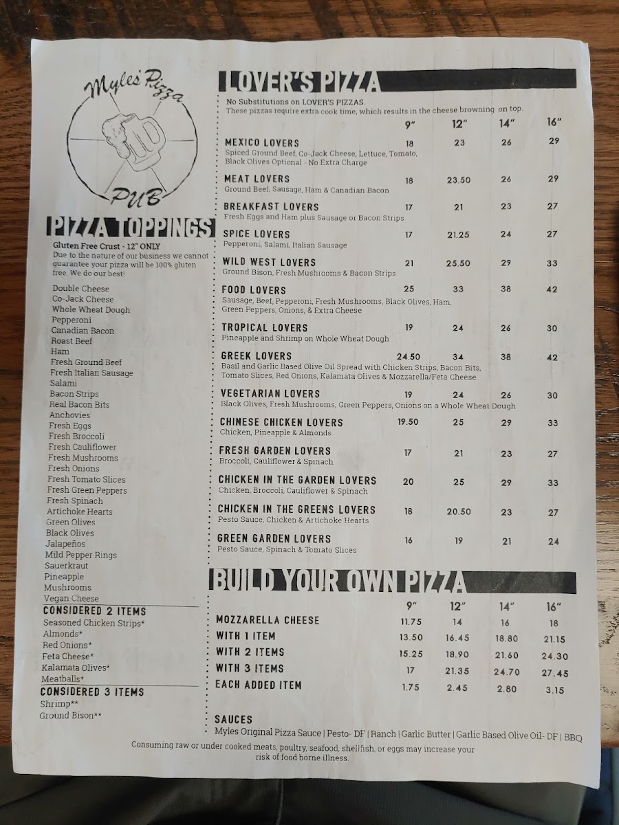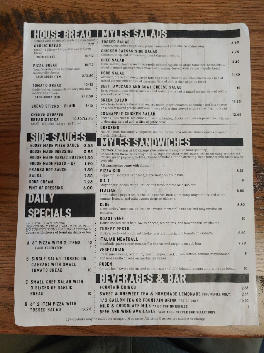 Overall, Myles Pizza Pub is a pizza paradise waiting to be explored!